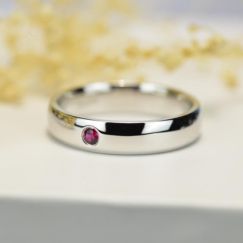 Round 2 mm, Ruby  I2-Clarity, Ex-Cut, Ex-Polish, VG-Symmetry in 14K White Gold Men's Ring.