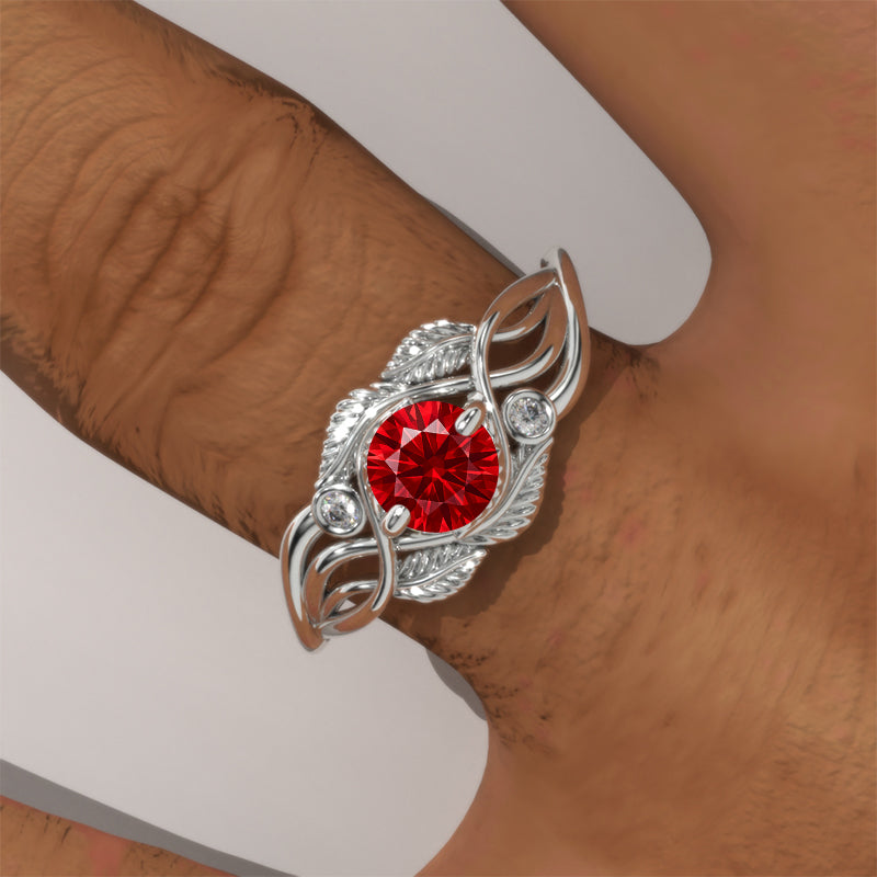 Ruby White Gold Engagement Lattice Floral Accented Ring - Giliarto