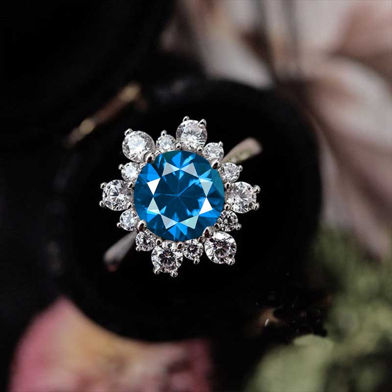 Snowflake Cornflower Sapphire Ring, 2.0ct Round Cut Cornflower Sapphir - Giliarto