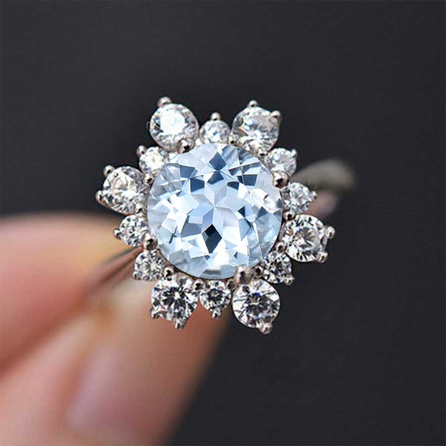 Snowflake Genuine Natural Aquamarine Ring - Giliarto