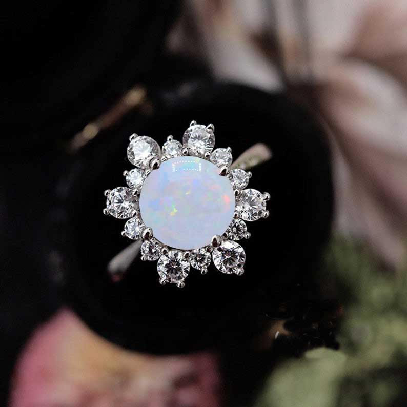Snowflake Genuine White Opal Ring/2.0ct Round Cut Genuine White Opal H - Giliarto