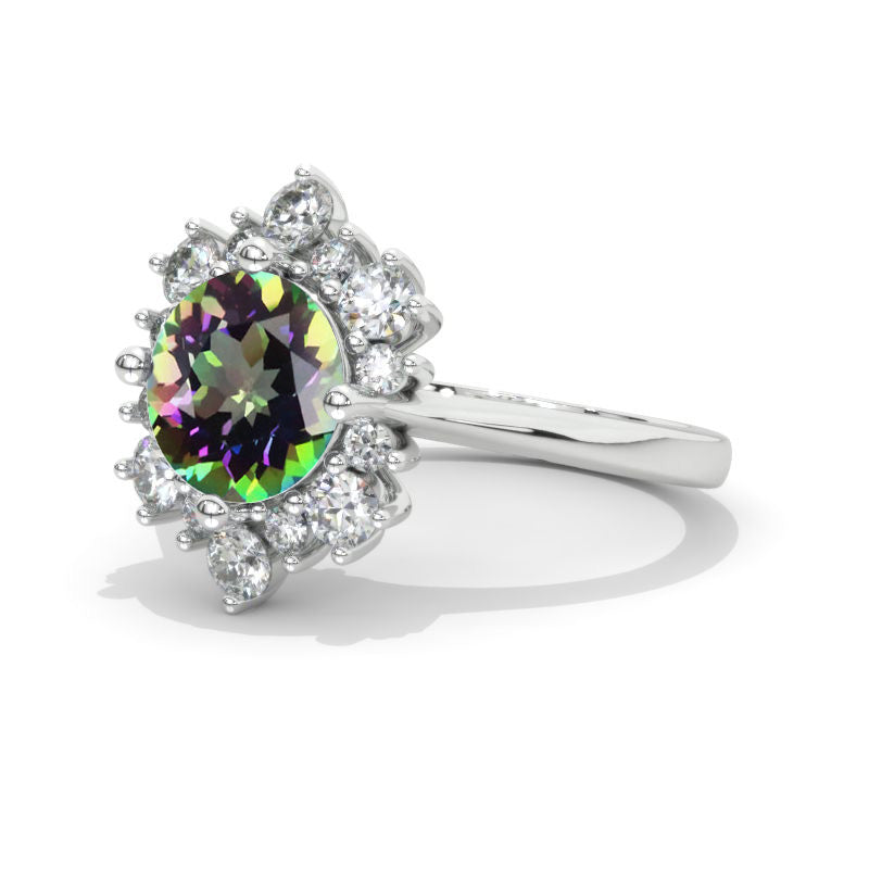 Snowflake Mystic Topaz Ring/2.0ct Round Cut Genuine Naturae Mystic Top - Giliarto