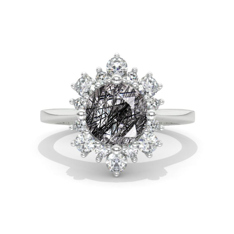 Snowflake Natural Rutilated Quartz Ring. 2.0ct Round Cut Rutilated Qua - Giliarto