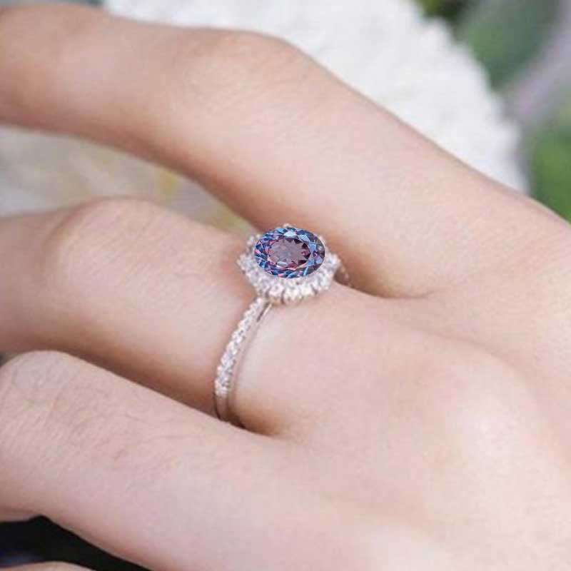 Snowflake Portuguese Cut Alexandrite Ring/1.0ct Round Portuguese Cut Alexandrite Halo Ring/Solid 14K White Gold Ring/Art Deco Engagement Ring / Wedding Ring Women