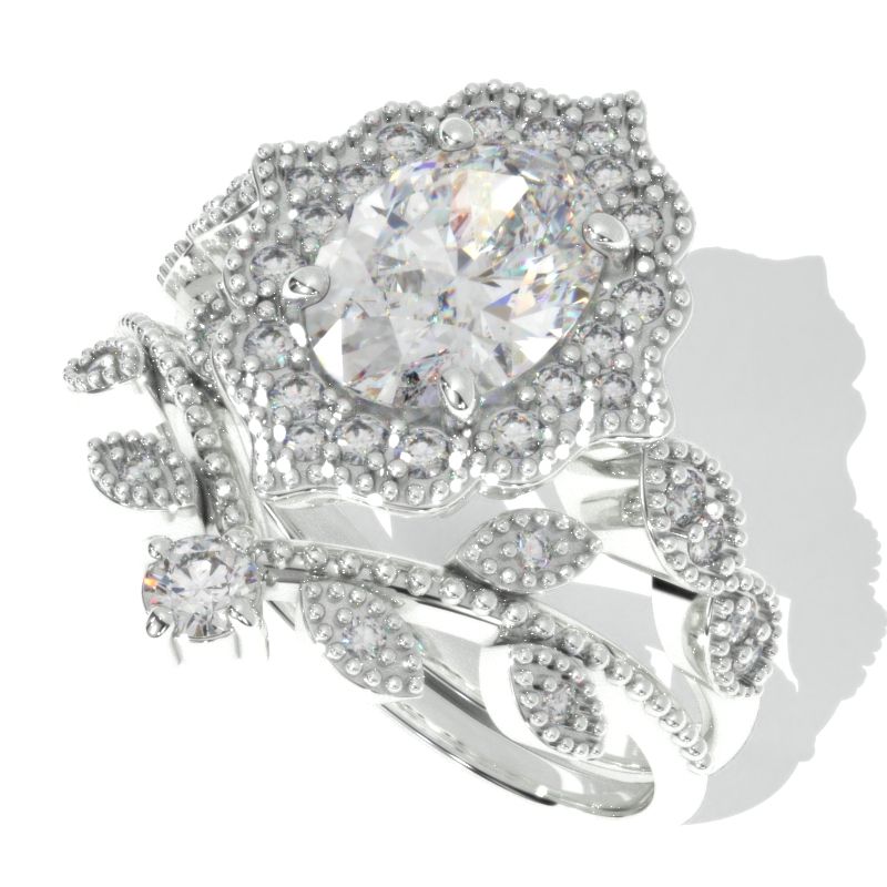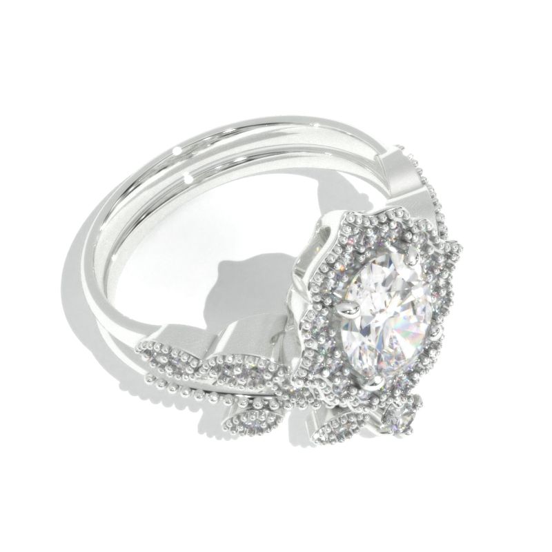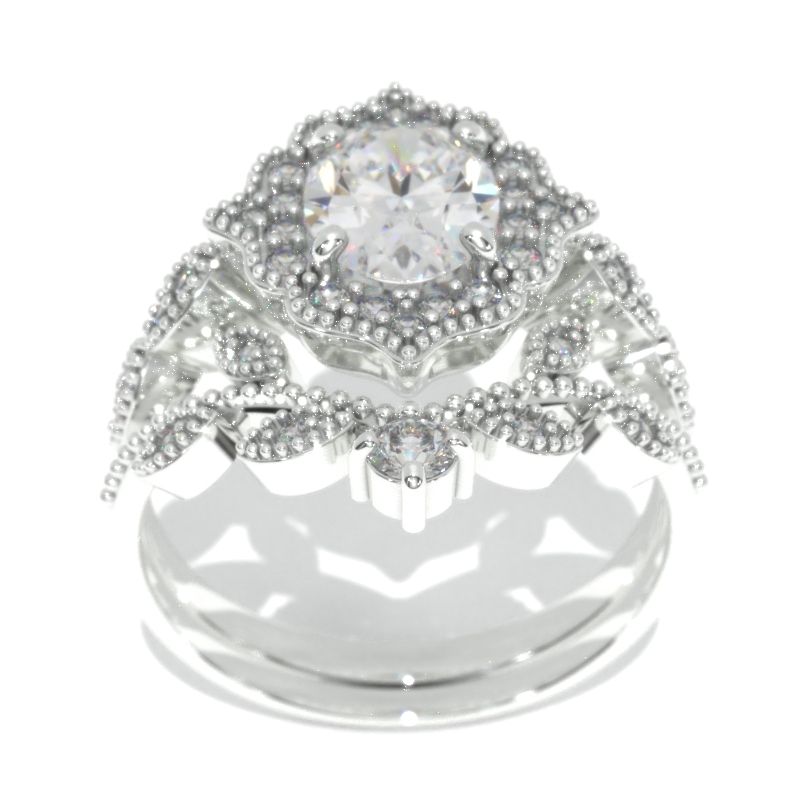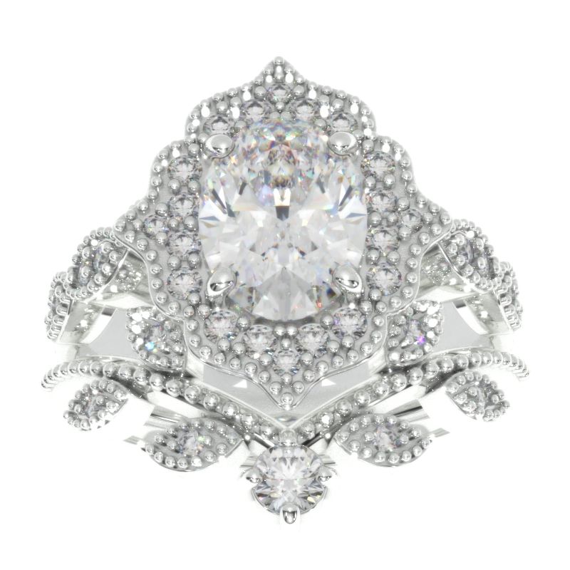 Engagement : 1.9 Carat Giliarto Moissanite Oval 8x6 mm G-H color, VVS1 - Clarity, VG-Cut, Ex-Polish, VG-Symmetry Center Stone with 38 Colorless 0.5 CTW Moissanite