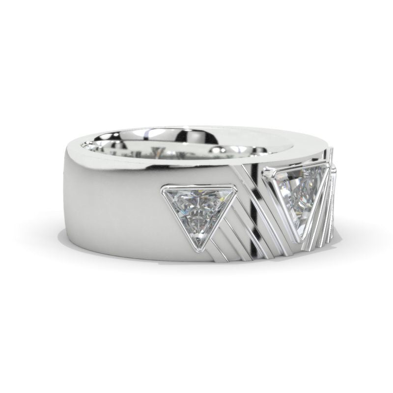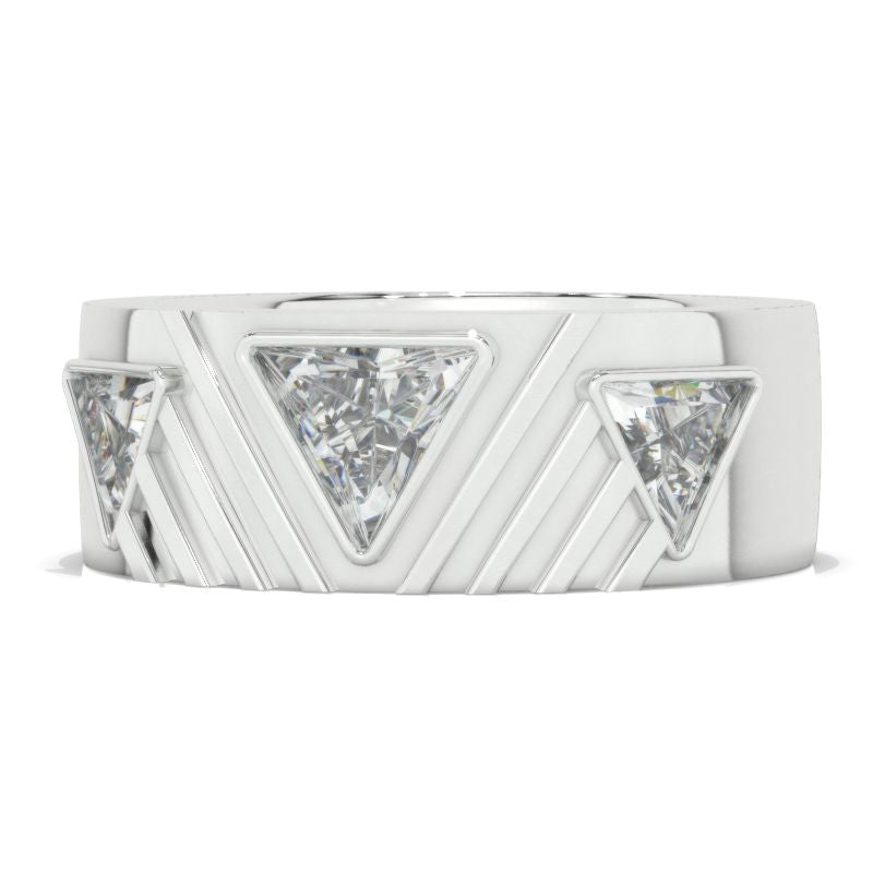 LAB-Grown Diamond TriangleĀ D-Colorless, VVS1-Clarity, Ex-Cut, Ex-Polish, VG-Symmetry, Set with Colorless LAB-Grown Diamond Accent stonesĀ in 14K White GoldĀ Men'sĀ Ring.Ā