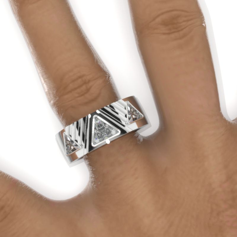 Triangle LAB-Grown Diamond Men's Gold Ring Model 337