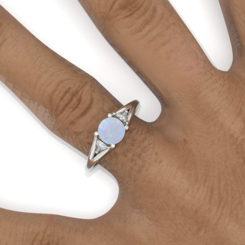 Trillion Three Stone Genuine Natural White Opal White Gold Engagement - Giliarto