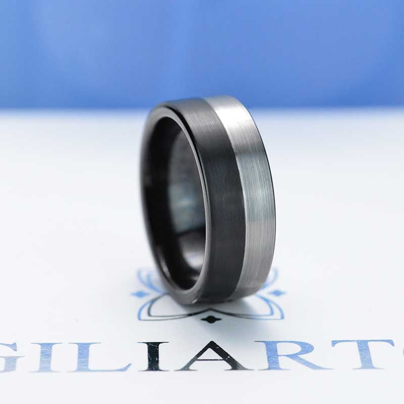 Tungsten Ring Black and Silver Brushed Men's Ring, Men's Wedding Band, - Giliarto