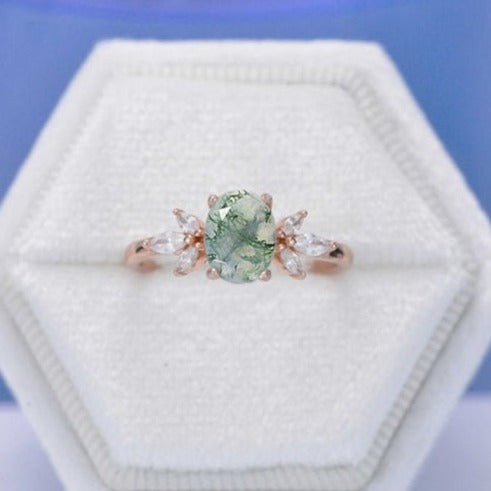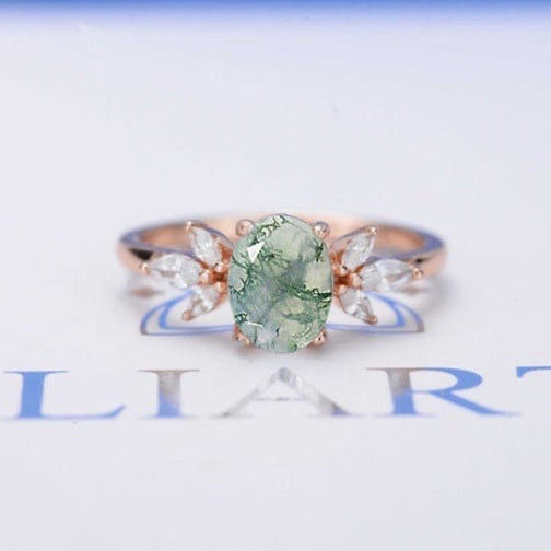 Vintage Oval Moss Agate Ring Cluster Green Moss Agate Moissanite Weddi - Giliarto