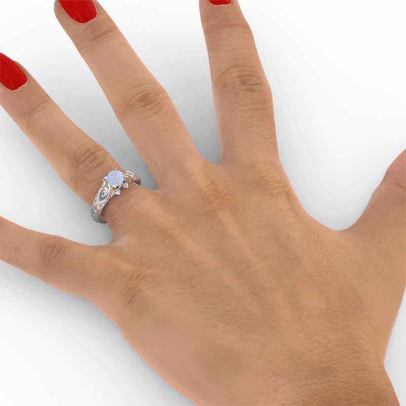 White Opal Engagement Ring 14K Rose Gold Celtic Ring
