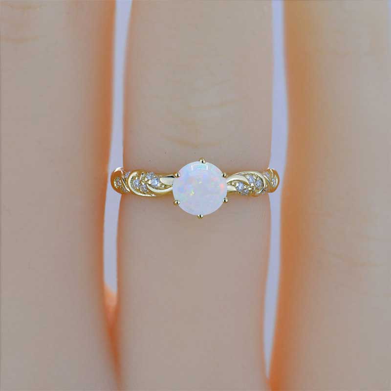White Opal Gold Ornaments Engagement Ring - Giliarto