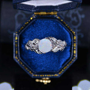 Natural White Opal Center Stone ( 6mm Round, VVS1-Clarity, Ex-Cut, Ex-Polish, VG-Symmetry) in 14KĀ  White Gold.