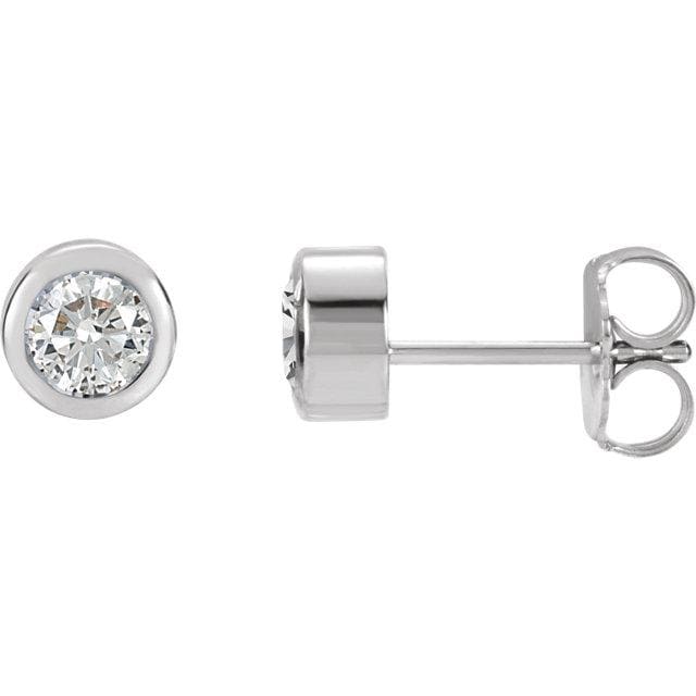 Round Genuine White Sapphire Bezel Set Stud 14K White Gold Earrings