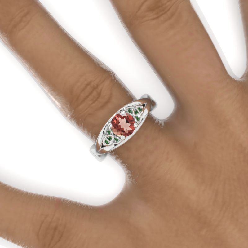 On the image featured Celtic Round Ethically Lab-Grown Zultanite Grade AAA+ 6mm VG-Symmetry  with-0.1 CTW accent stones 14K White Gold  Ring. Please remember that you can customize any design with your choice of metals and stones.