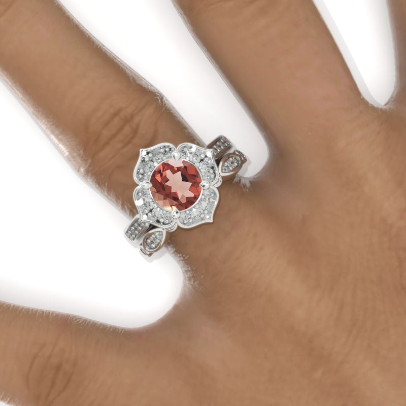 Engagement Ring: 1.2 Carat Ethically Lab-Grown Zultanite Grade AAA+ Center Stone Round 7mm and Moissanite Accents: D-Colorless, VVS1-Clarity, VG-Cut, Ex-Polish, VG-Symmetry Center Stone in 14K White Gold Ring.